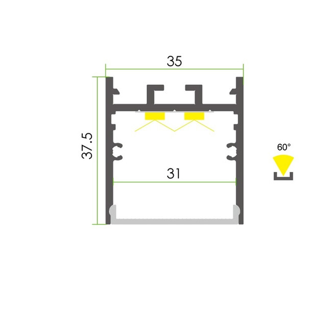 Корпус підвісного світильника виготовлений з високоякісного алюмінієвого профілю ( перетин профілю 35х37 мм) та має високоякісне порошкове покриття. Лінійний світильник постачається з регульованими підвісними тросами довжиною 2000 мм, щоб ви могли налаштувати світло відповідно до своїх потреб. Оскільки профіль світильника є однокамерним блок живлення виноситься за межі профілю. Драйвер розміщений в драйвербоксі який можна змонтувати до стелі. Світлодіодний лінійний світильник має клас захисту IP20 і випускається тільки для внутрішнього використання. Наше виробництво має можливість нарізати профіль різної довжини та під будь яким кутом, ми можемо виготовляти світильники різних геометричних форм квадрати, прямокутники, трикутники трапеції зиґзаґи та багато іншого, що дає змогу втілити запит найвибагливішого дизайнера.